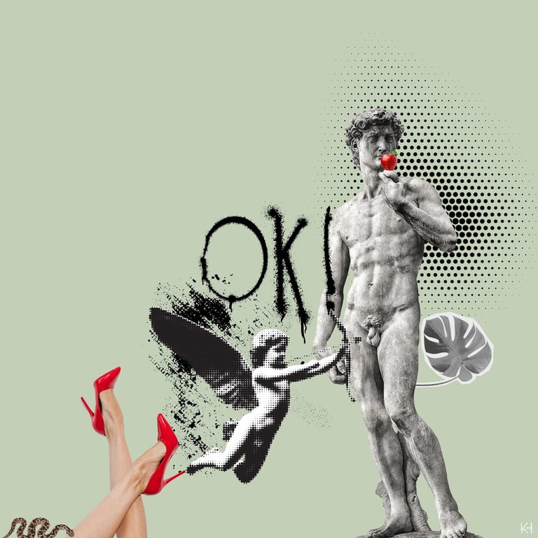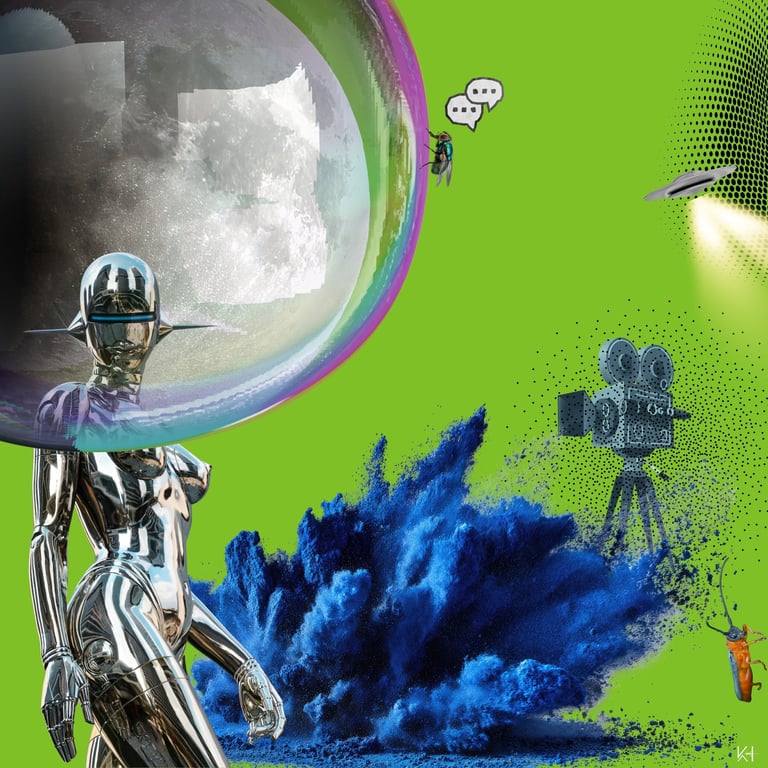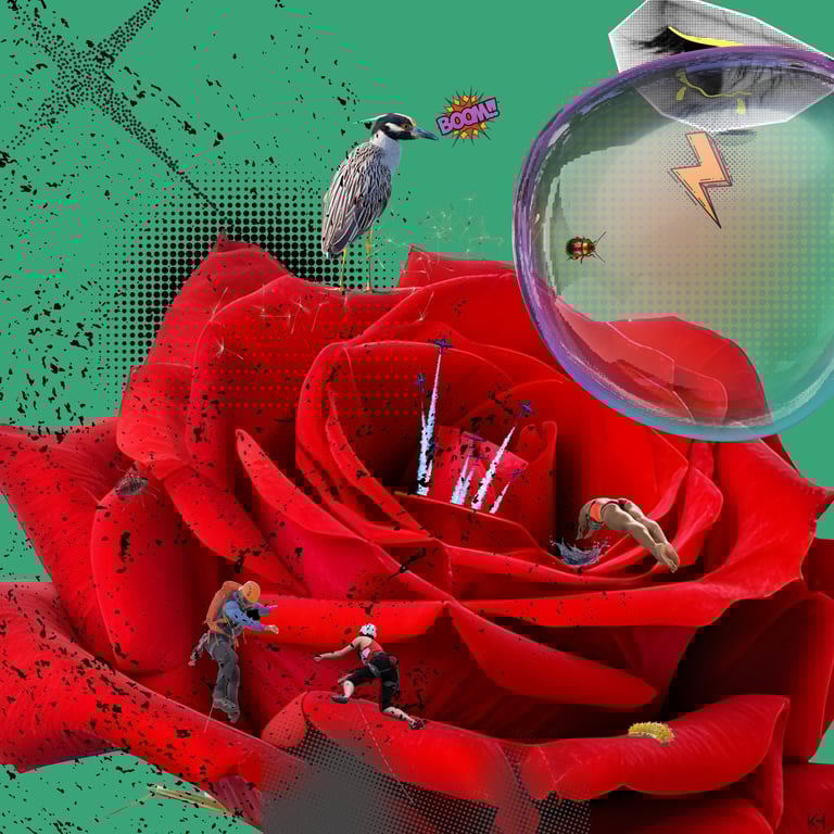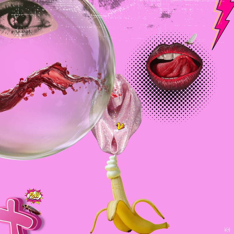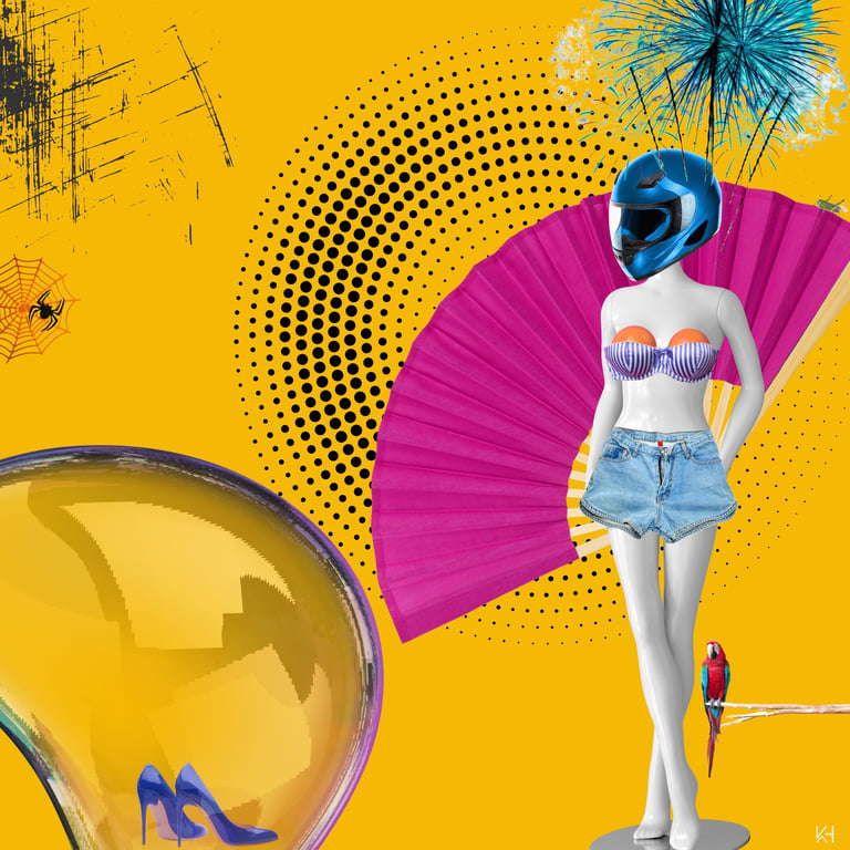 En mi trabajo, el collage digital pop se llena de composiciones surrealistas y colores vibrantes. Estas obras contemporáneas son mi manera de reinterpretar la cultura visual actual, capturando la esencia del arte moderno.